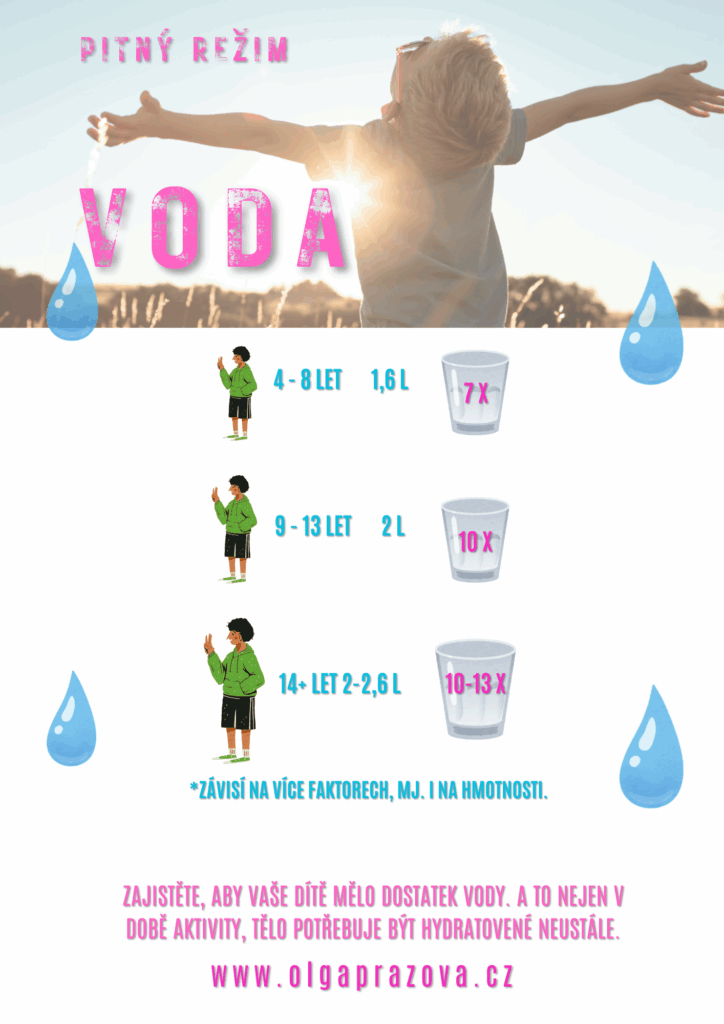 Pitný režim je důležitý nejen v létě nebo v době fyzické aktivity, je důležité dětské tělo hydratovat neustále.